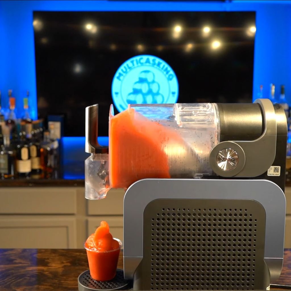 6. Dispense: Slowly pull the handle to release the Cranberry Vodka Slushy into glasses.