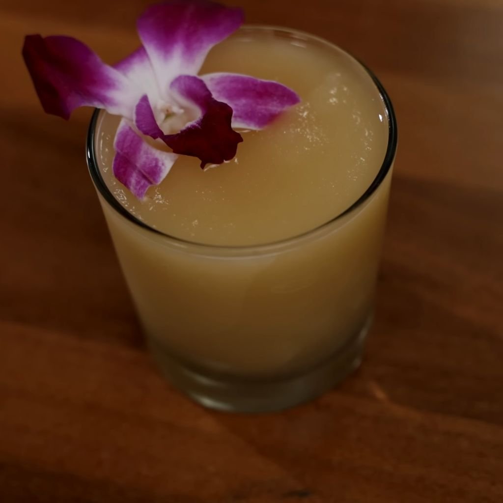 7. Garnish: Float a pineapple wedge, orange slice, or cherry on top. Serve immediately.
