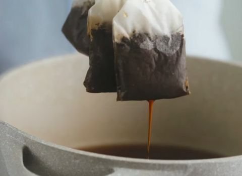 - Lift the tea bags from the pot and place them aside. Do not squeeze them to keep the tea smooth and not bitter.